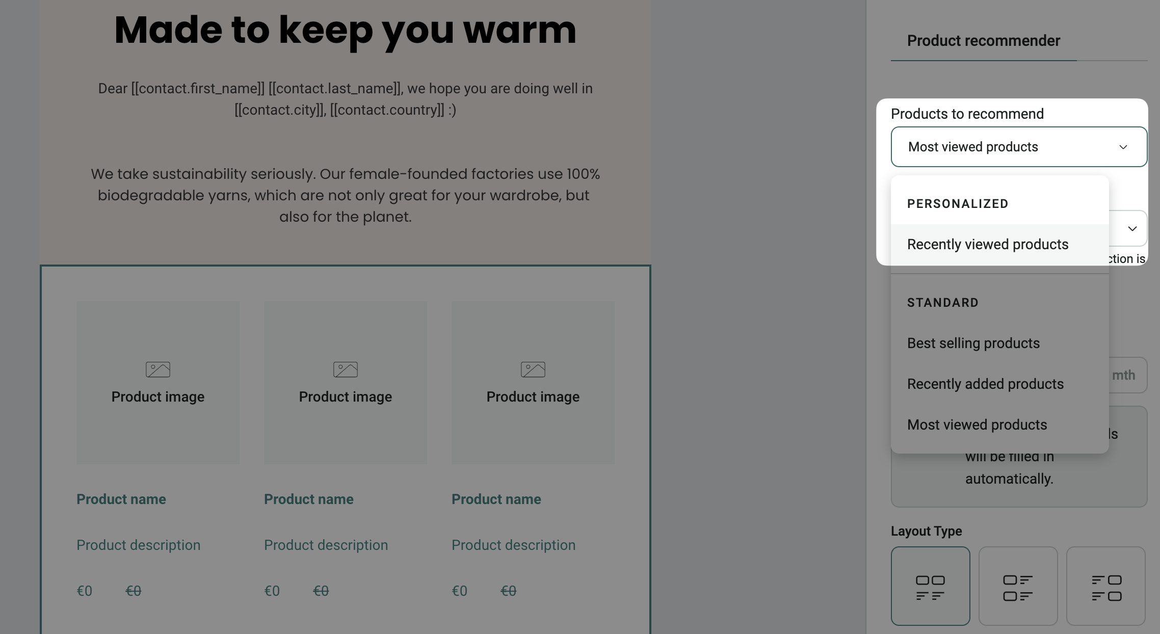 If you're on the Pro plan, you can boost your marketing by adding personalized product recommendations to your campaigns. Show each contact items they’ve recently viewed to make your emails more relevant and engaging.