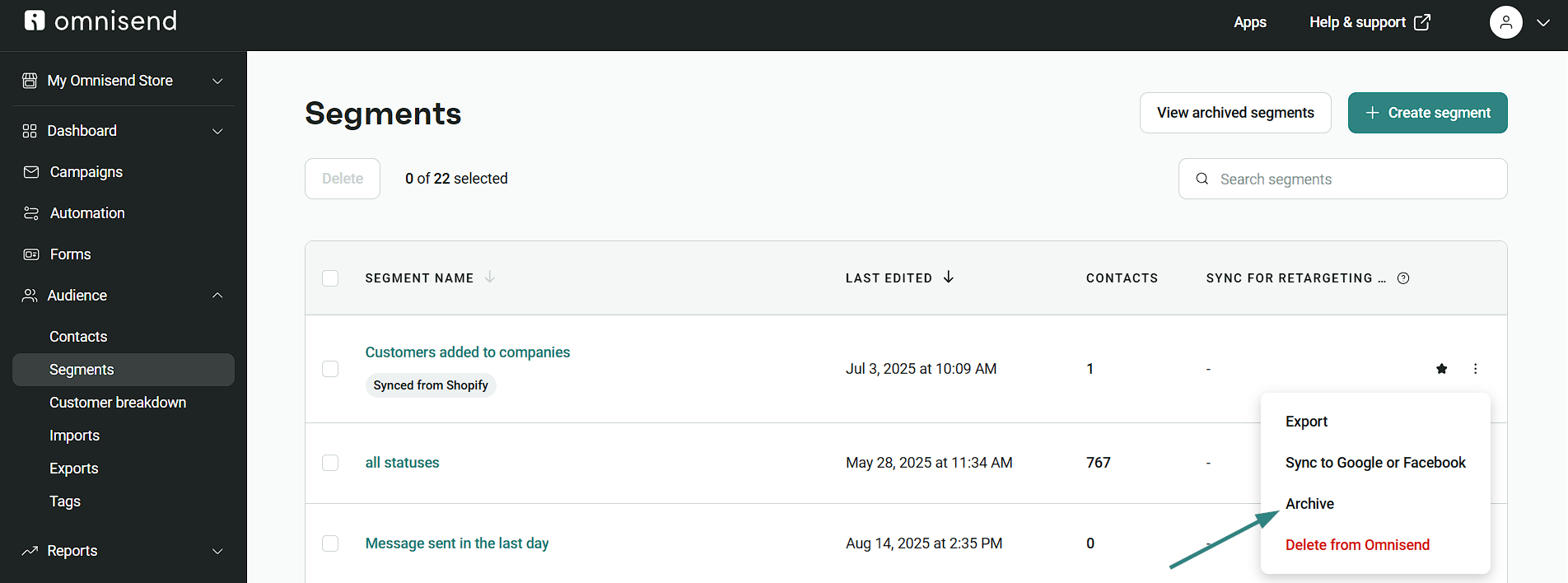 Our new tool lets you archive outdated segments instead of deleting them, making it easier for new users to keep their lists clean and organized. You can also restore archived segments with just one click.