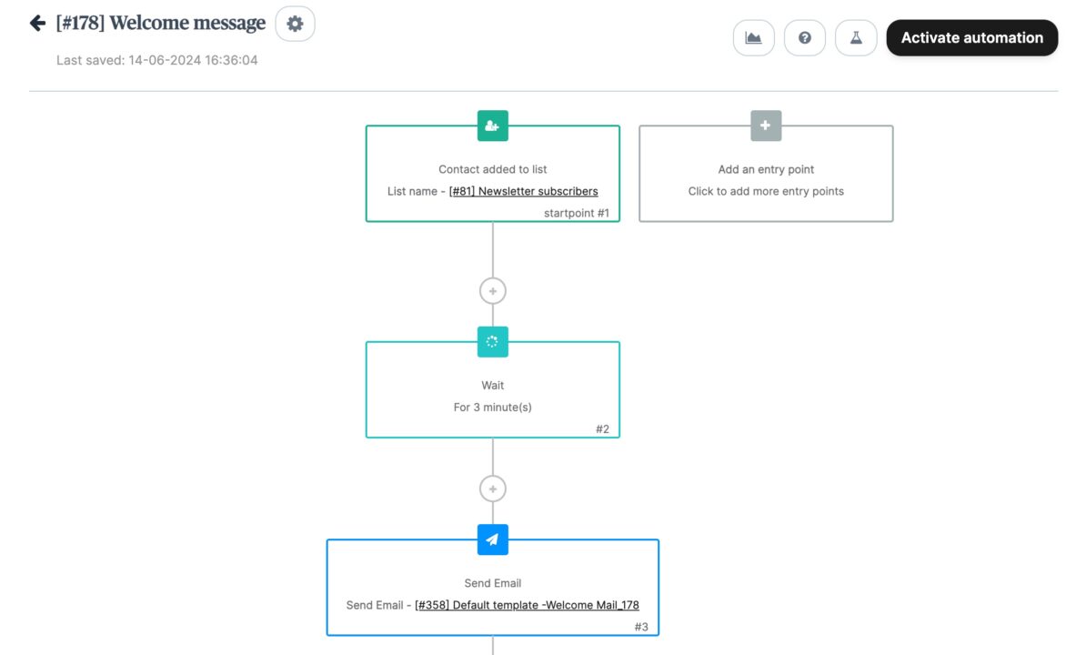 Take a look at this pre-built automation workflow on Omnisend, which automatically sends emails or SMS messages based on specific triggers.