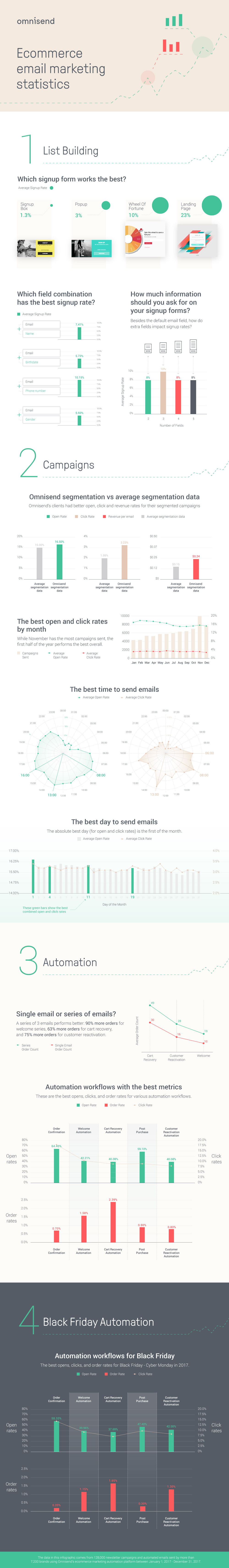 In order to get in-depth information on when and how often to send your email campaigns, what signup form performs the best, and how much better automation is for marketing campaigns, check out our ecommerce infographic below:![Ecommerce Email Marketing Statistics for 2018 [Infographic]](https://www.omnisend.com/blog/wp-content/uploads/2017/09/Ecommerce-Email-Marketing-Infographic-2018-1000px-omnisend4.jpg)