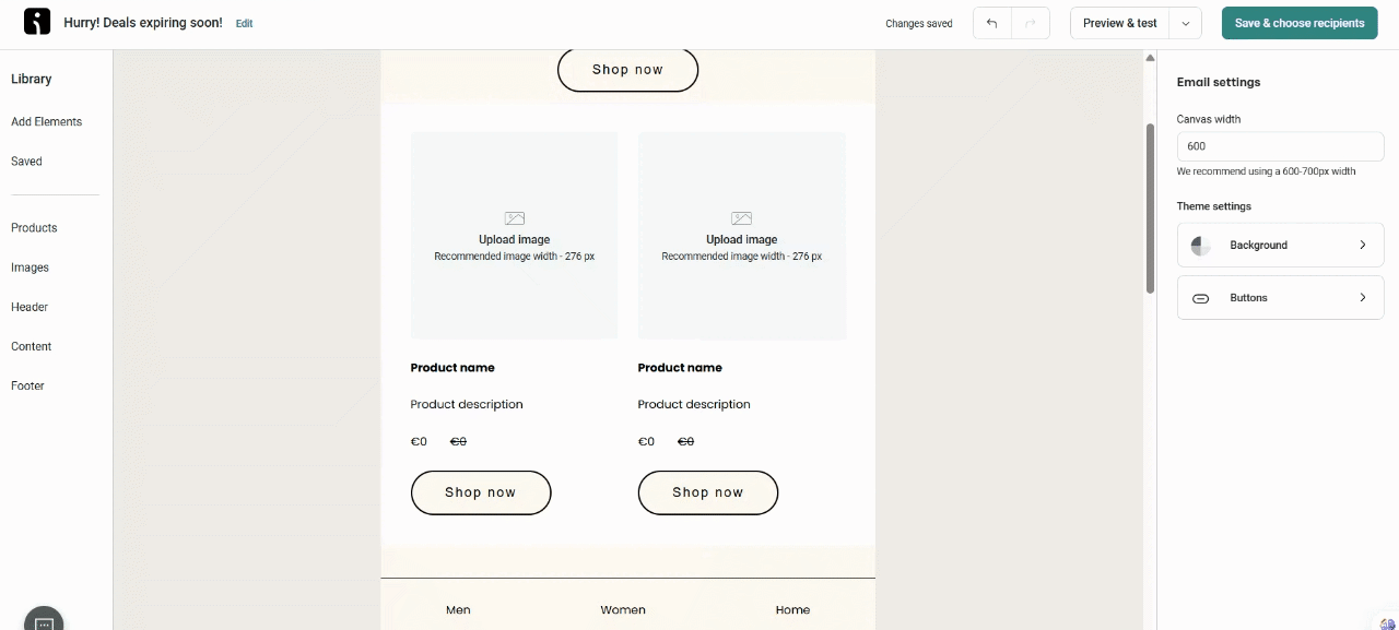 Omnisend’s intuitive drag-and-drop email builder includes a product picker feature, as shown below, that pulls images and descriptions directly from the store. The product picker even displays available product variants to save you time.