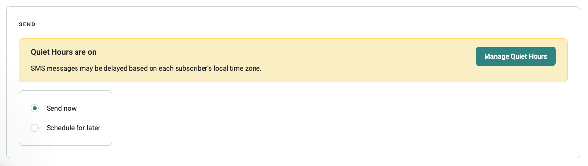 When quiet hours are enabled on your account, we now show a clear message while you’re setting up your SMS campaign, so you know upfront why scheduling might be restricted. No more digging around to figure it out. It’s just… right there.