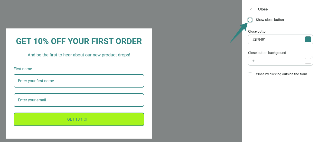 👉 Learn more about Close button settings in Signup Forms