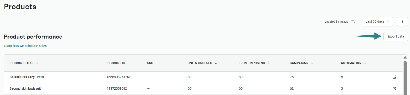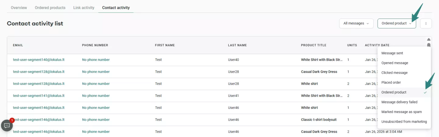 👉 Learn more about Ordered Products Reports in Automation, Contact Activity Reports in Campaigns and Automation, and Products reports page