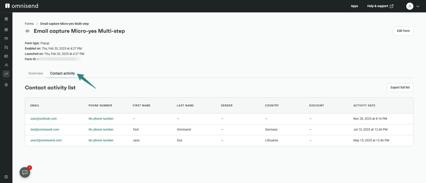 👉 Learn more about Form Reports Contact Activity