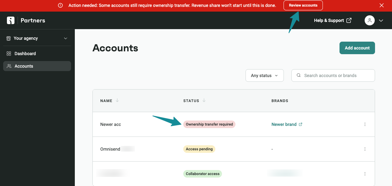 Our Partner Portal layout has been refreshed to improve visual navigation and usability. The new layout helps you navigate, manage accounts, and complete tasks with ease. Payouts Access: You can now access your PartnerStack account directly from the side menu with a single click. Accounts List: The updated accounts list clearly displays all account statuses and includes a search bar to help you quickly locate any account. Ownership Transfer: If an ownership transfer is pending, an in-app reminder will prompt you to complete the transfer on time.