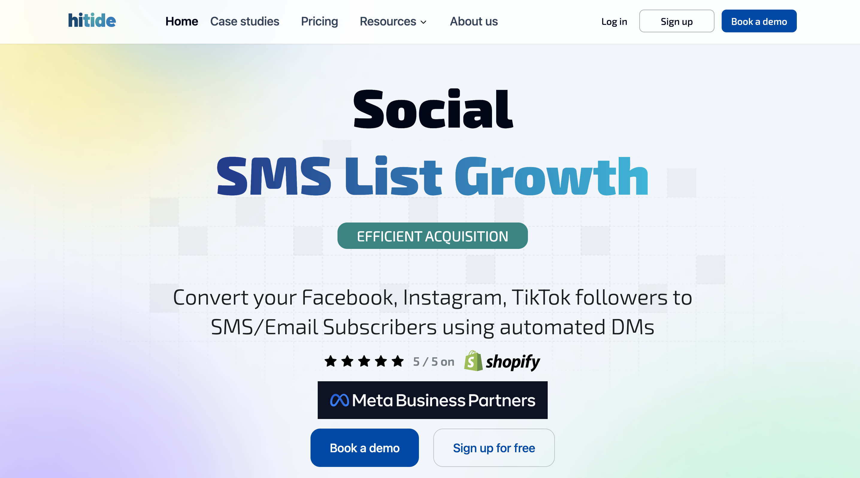 HiTide helps you grow your SMS list by turning engagement from Facebook, Instagram, and TikTok into subscribers through scalable message automations. You can run campaigns like giveaways, early access, restocks, and launches to drive opt-ins.