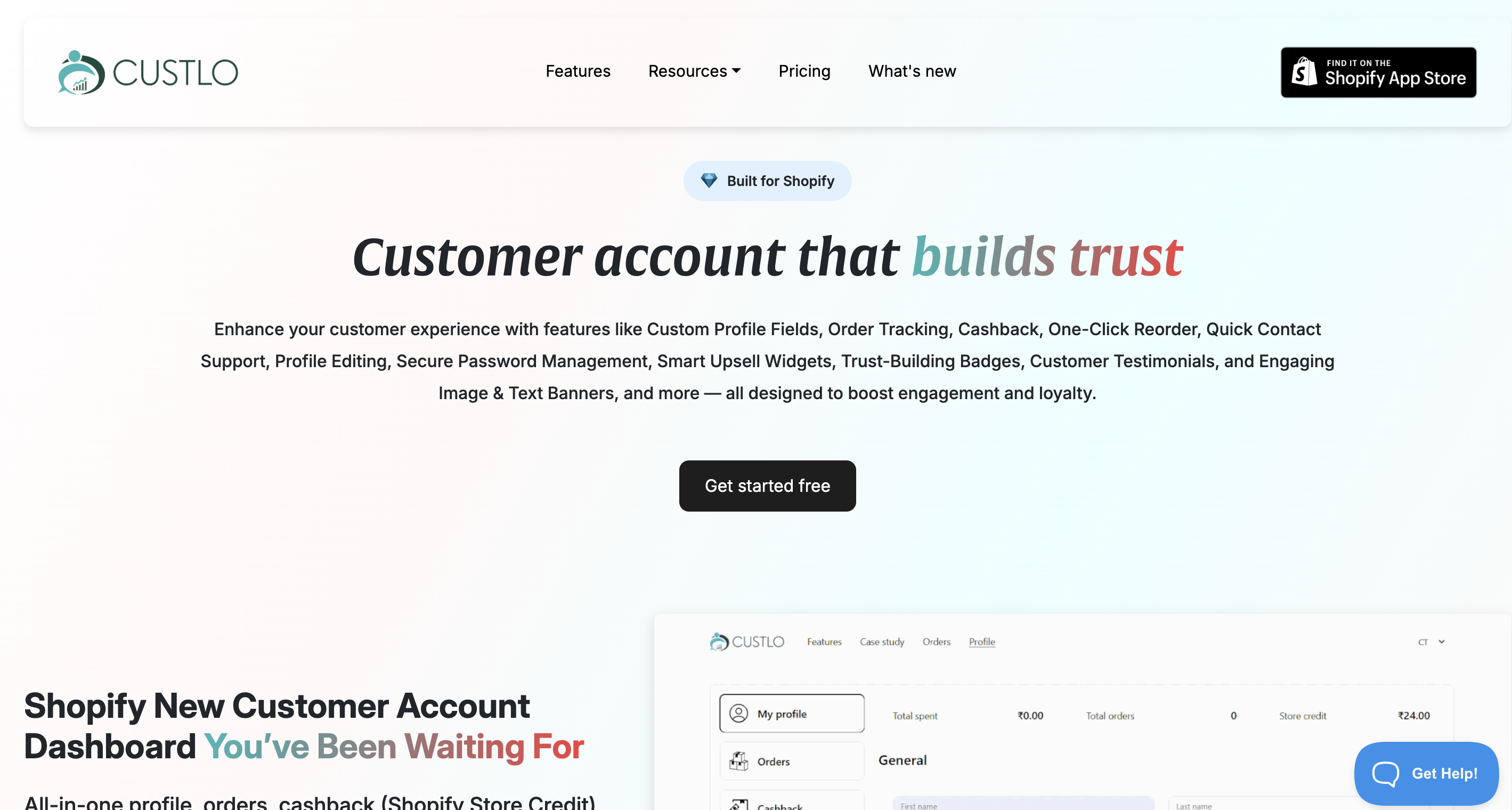 Custlo Customer Accounts is a Shopify app that helps you manage and enhance customer accounts by offering a more flexible, personalized, and modern login and account experience for your storefront customers.