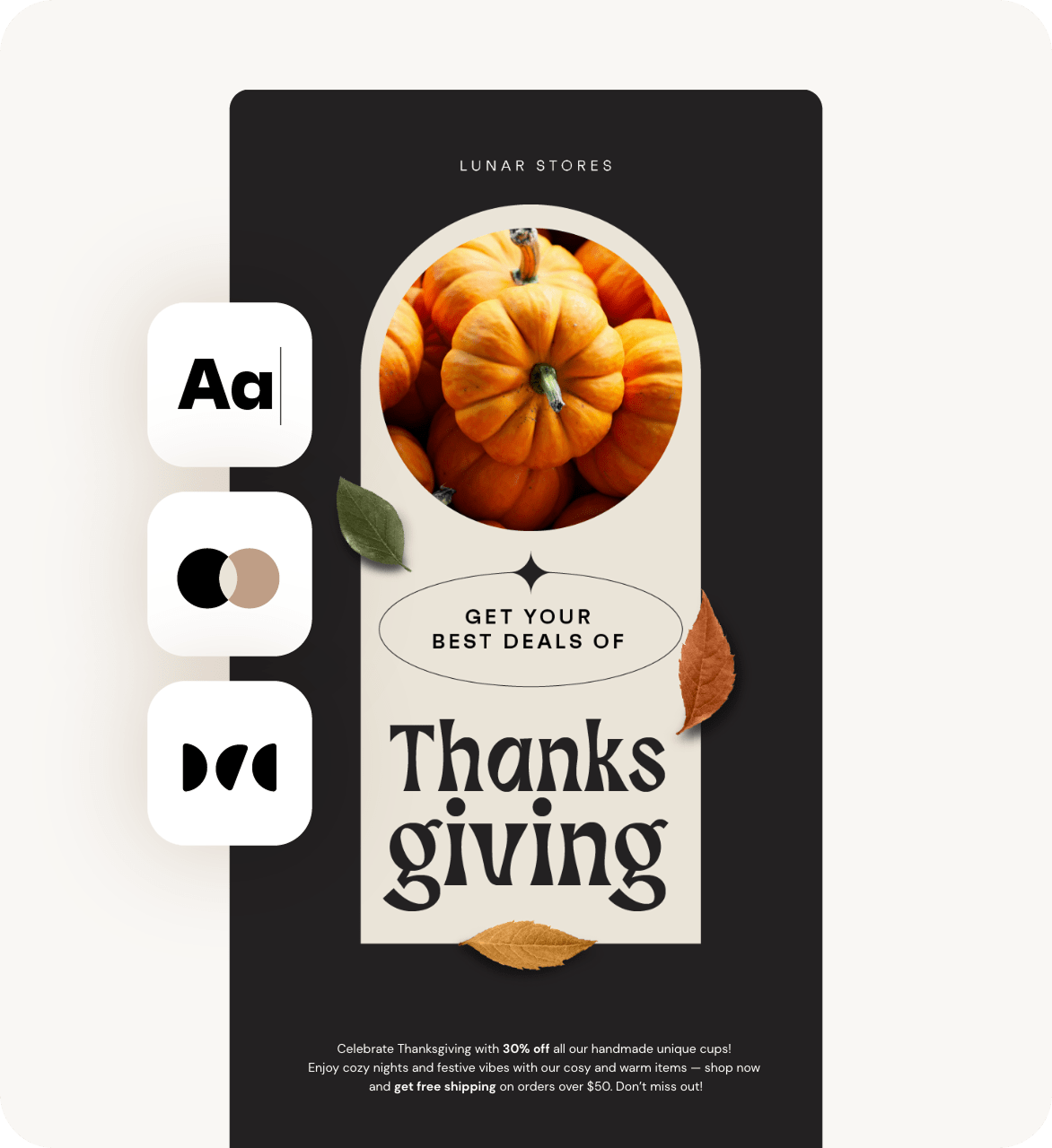 Omnisend can take branding from your website and automatically add it to every email you create. Logo, brand colors, even your social media links. You can also use our drag-and-drop editor to add brand elements wherever you want. Your brand. Your email. Your way.