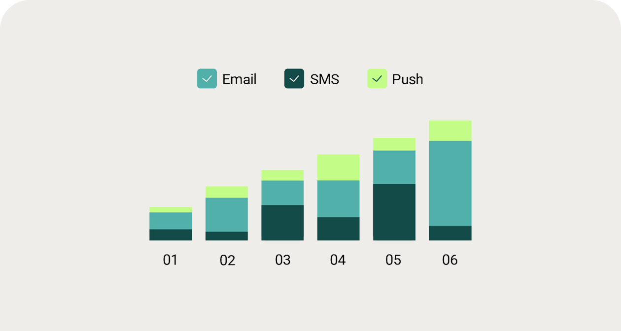 By reaching customers on their preferred channels — email, SMS, or push — you increase engagement and the likelihood of conversion. Since all activity is tracked in one platform, you can clearly see which channel or combination led to a sale, making ROI measurable and provable.
