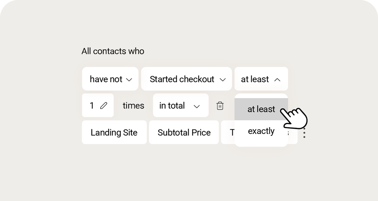 Choose segments that identify new subscribers without purchases, first-time customers, or recently converted leads — great for onboarding and nurturing flows.