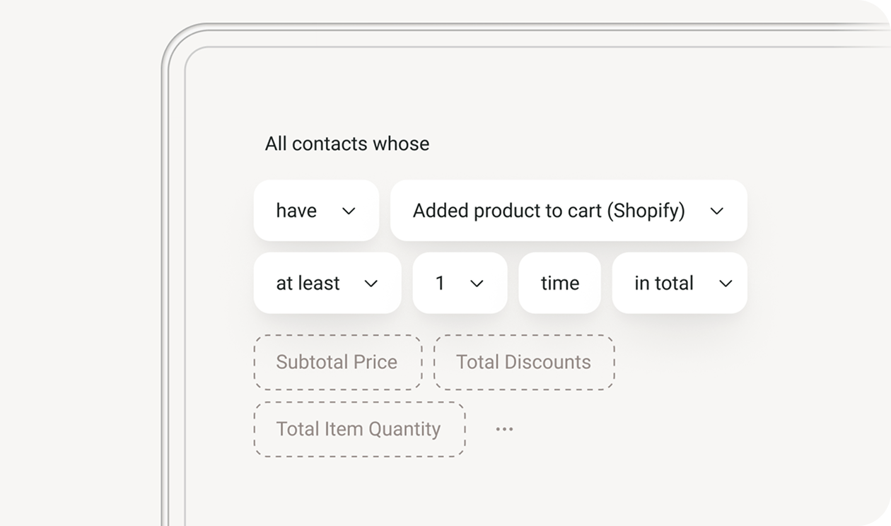 Segment your customers based on their shopping behavior and more properties to build only highly relevant emails and texts.