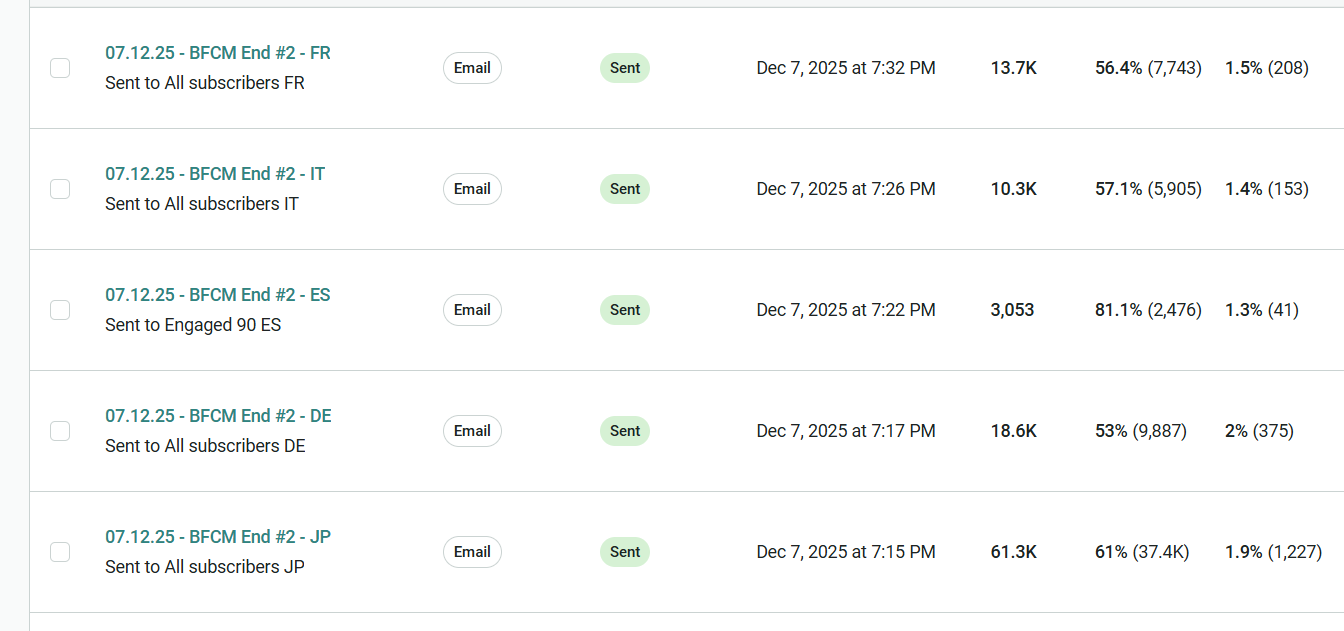 For a brand that segments by language and builds workflows accordingly, that unified structure matters. Their automation tree ensures customers receive communication in their chosen language, while campaigns remain engagement-driven and segmented.